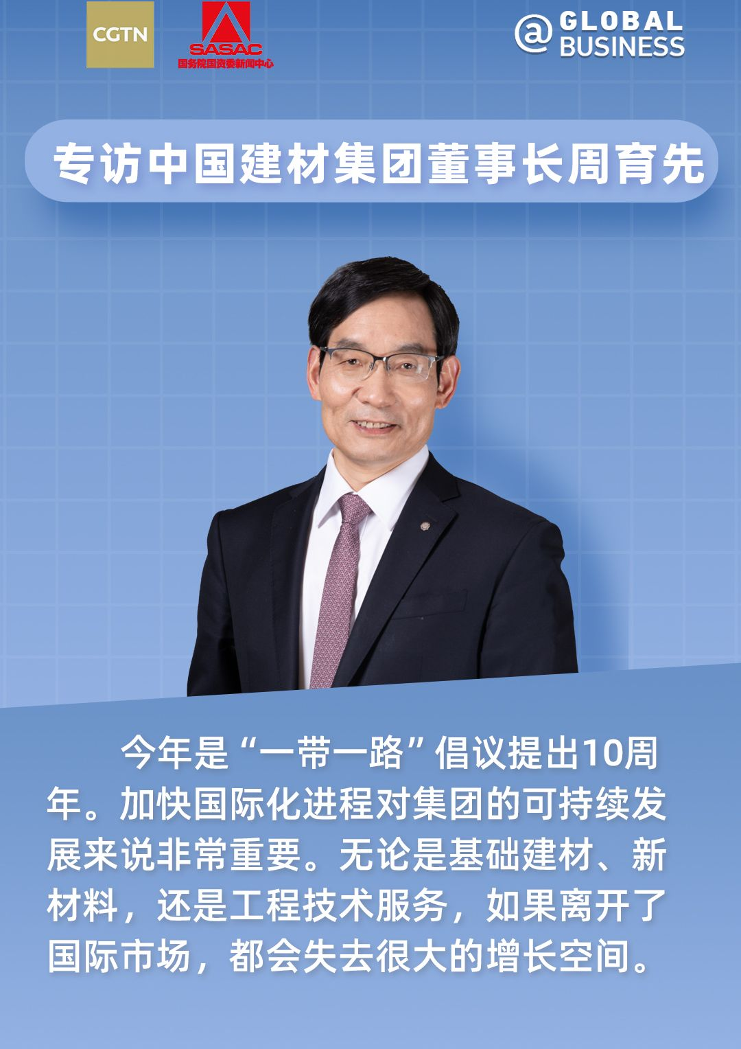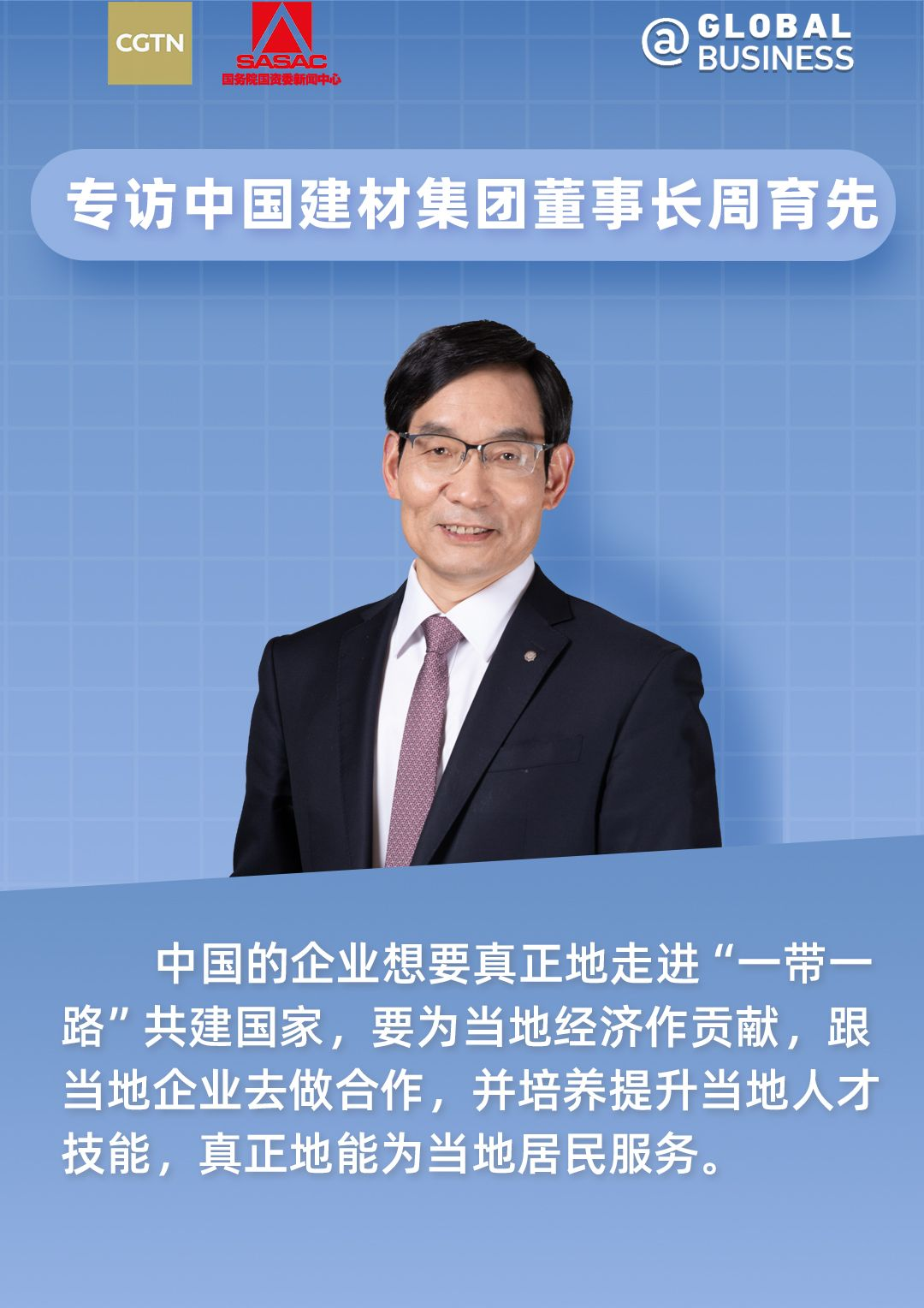 絲路新國(guó)企 | 周育先接受CGTN專(zhuān)訪(fǎng):共話(huà)中國(guó)建材“一帶一路”海外融合發(fā)展之道