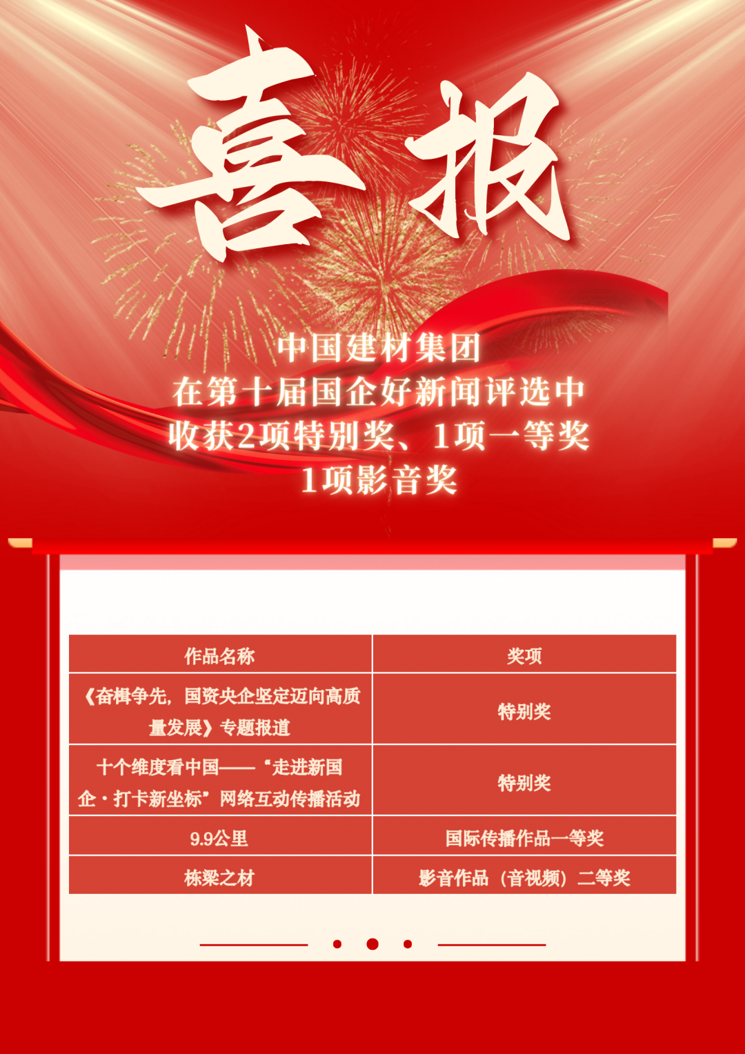 喜報!中國建材四項作品獲評第十屆“國企好新聞”