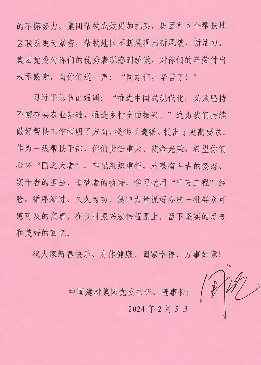 致中國(guó)建材集團(tuán)幫扶干部的一封信