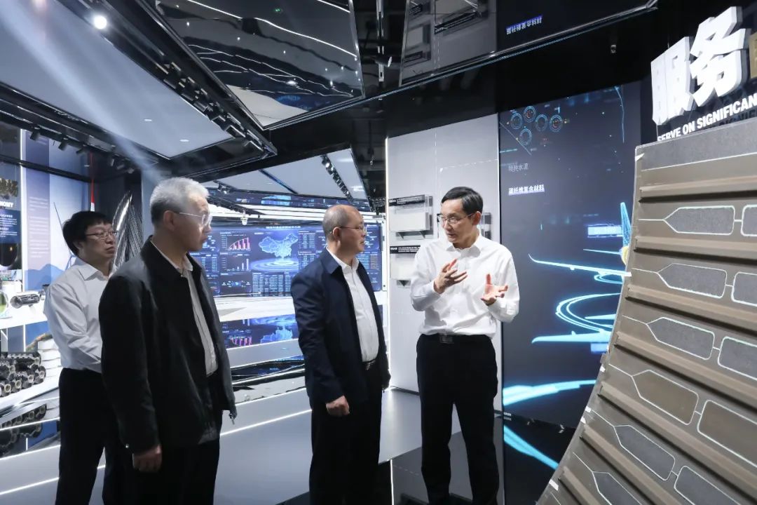 會(huì)談前,周育先、王于猛陪同趙東一行參觀了中國(guó)建材集團(tuán)展廳。