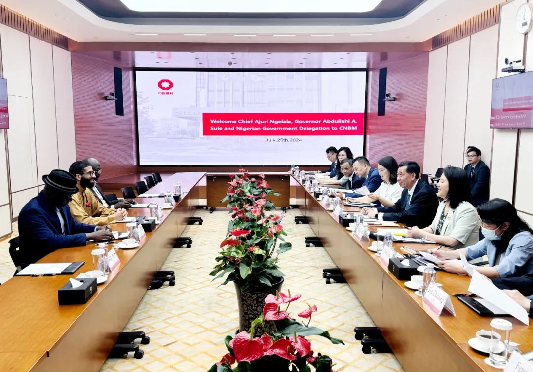 尼日利亞納薩拉瓦州州長(zhǎng)阿卜杜拉希·蘇萊、尼日利亞基礎(chǔ)設(shè)施公司首席執(zhí)行官拉扎勒斯·安巴佐等;中國(guó)建材股份總裁助理莊琴霞,凱盛科技黨委副書記、總經(jīng)理張健,集團(tuán)投資與資本運(yùn)營(yíng)部總經(jīng)理黃劍鋒,中材國(guó)際黨委書記、董事長(zhǎng)印志松,中材科技黨委書記、董事長(zhǎng)、總裁黃再滿,中國(guó)建材總院黨委委員、總會(huì)計(jì)師馮俊等參加會(huì)見(jiàn)。