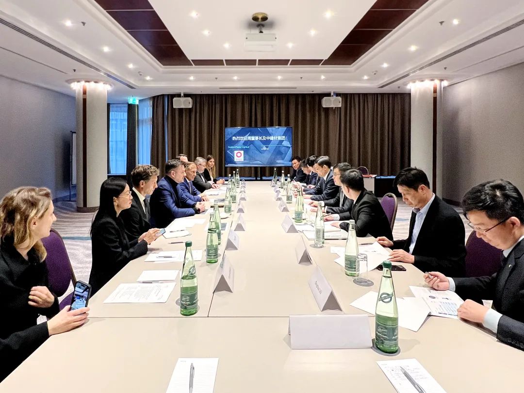 中材國(guó)際董事長(zhǎng)印志松,中國(guó)建材集團(tuán)戰(zhàn)略發(fā)展部(國(guó)際合作部)總經(jīng)理查金祥,中研院總經(jīng)理陳勇;GPC集團(tuán)首席運(yùn)營(yíng)官Andreas Lukasczyk,GPC集團(tuán)中國(guó)區(qū)負(fù)責(zé)人Chang Xing,GPC集團(tuán)人力資源負(fù)責(zé)人Titiana Benassi,采購(gòu)部經(jīng)理Marie Stallmann等參加簽約儀式。