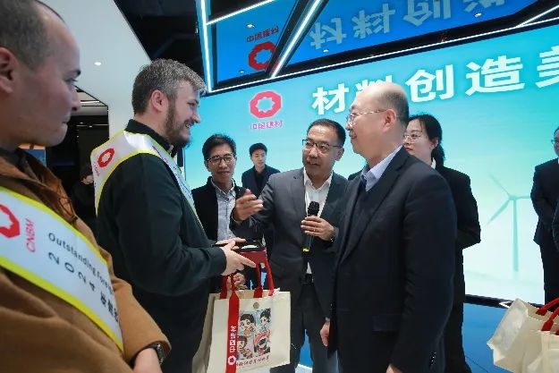 會見前,優(yōu)秀外籍員工們參觀了集團業(yè)務展廳。通過參觀交流,他們進一步了解了集團的整體發(fā)展情況,體驗了獨具特色的企業(yè)文化,切身感受到“材料創(chuàng)造美好世界”的企業(yè)使命擔當,對材料工業(yè)之美和企業(yè)文化魅力贊嘆不已。