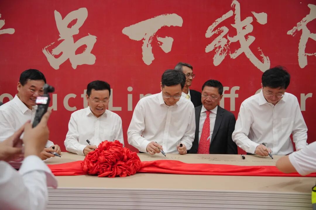 全體嘉賓對生產(chǎn)批次的第一批下線石膏板進行了產(chǎn)品下線揭幕和簽字留念。