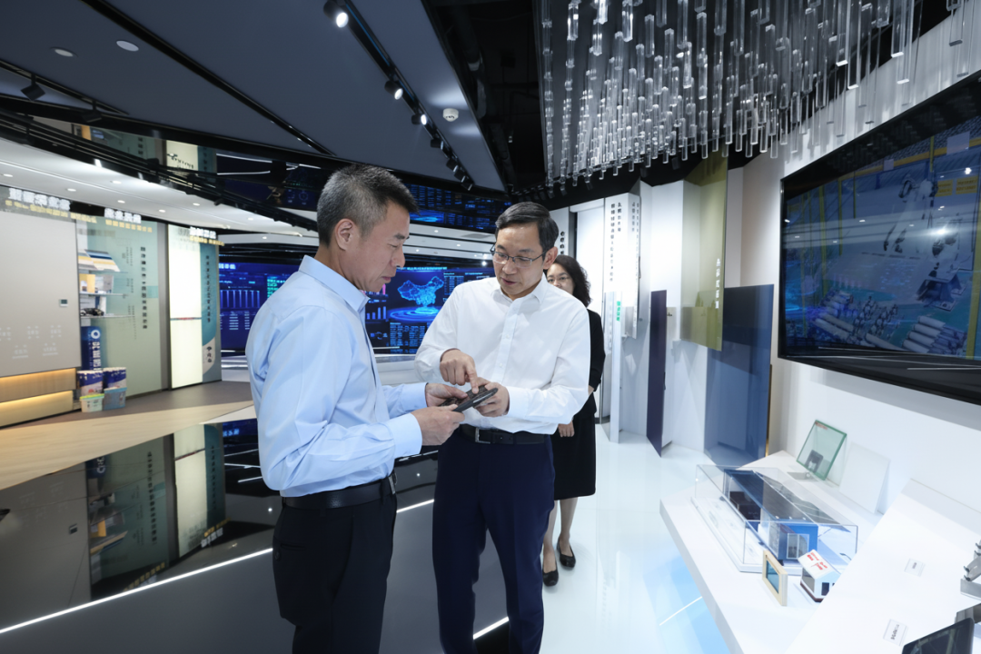 座談會(huì)前,周育先陪同李鎮(zhèn)參觀了集團(tuán)展廳。