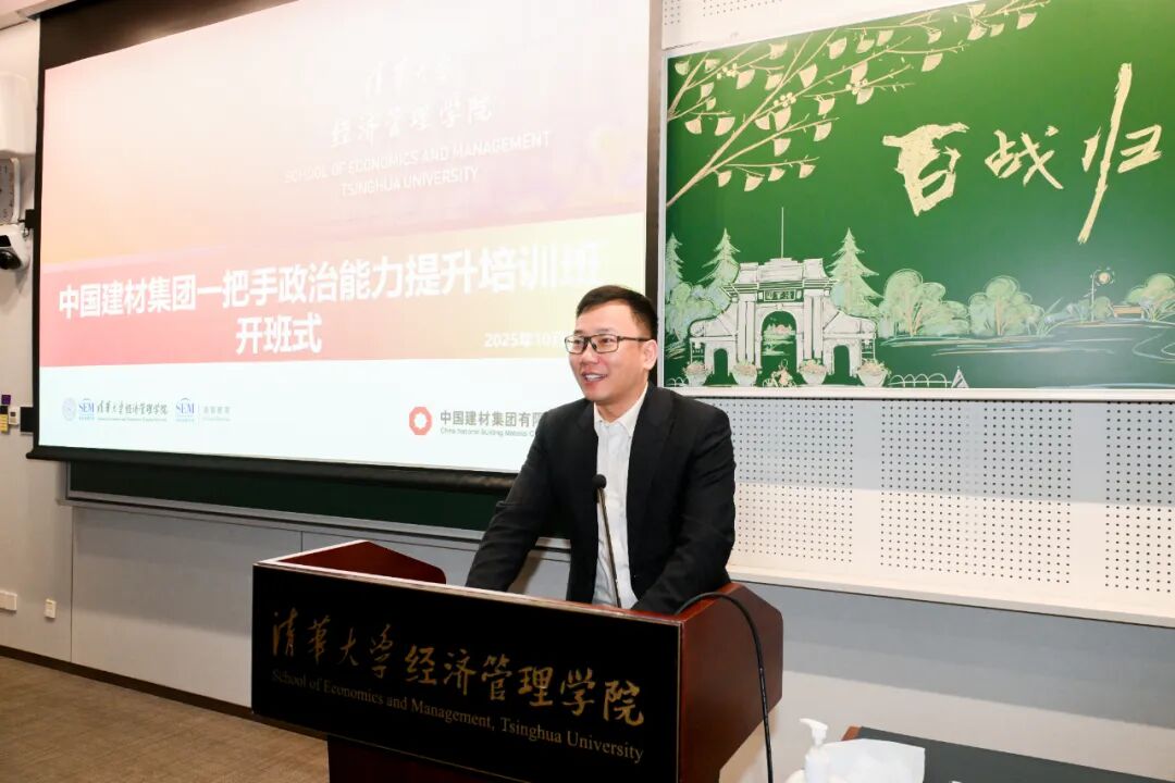 10月22日,中國(guó)建材集團(tuán)“一把手”政治能力提升培訓(xùn)班在清華大學(xué)經(jīng)濟(jì)管理學(xué)院開(kāi)班。集團(tuán)黨委副書記、總經(jīng)理常張利出席開(kāi)班式并作動(dòng)員講話,黨委常委、紀(jì)委書記劉磊應(yīng)邀出席。清華大學(xué)經(jīng)濟(jì)管理學(xué)院副院長(zhǎng)何平出席開(kāi)班式并致辭。開(kāi)班式由清華大學(xué)經(jīng)濟(jì)管理學(xué)院高管教育中心主任助理陳鳳主持。
