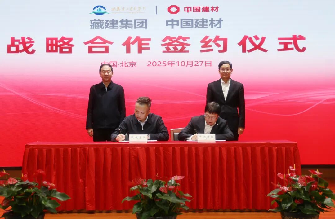 10月27日,中國建材集團與藏建集團在京簽訂戰(zhàn)略合作協(xié)議。中國建材集團黨委書記、董事長周育先,藏建集團黨委書記、董事長莊存?zhèn)コ鱿瘍x式并見證簽約。中國建材集團黨委常委、副總經(jīng)理王于猛,藏建集團黨委副書記、代總經(jīng)理曾朝斌代表雙方簽署戰(zhàn)略合作協(xié)議。藏建集團黨委委員、副總經(jīng)理馬俊海出席活動。