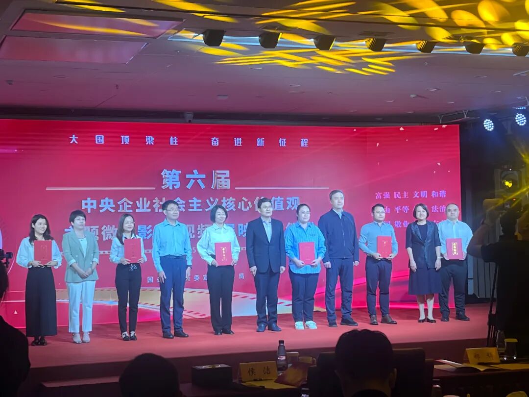 國資委宣傳局相關(guān)領(lǐng)導(dǎo)為主創(chuàng)人員(右1)頒獎