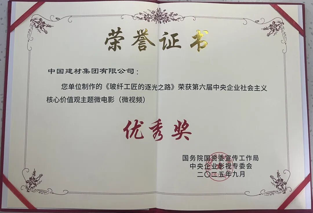 點(diǎn)贊!《玻纖工匠的逐光之路》榮獲國資委微電影優(yōu)秀獎~