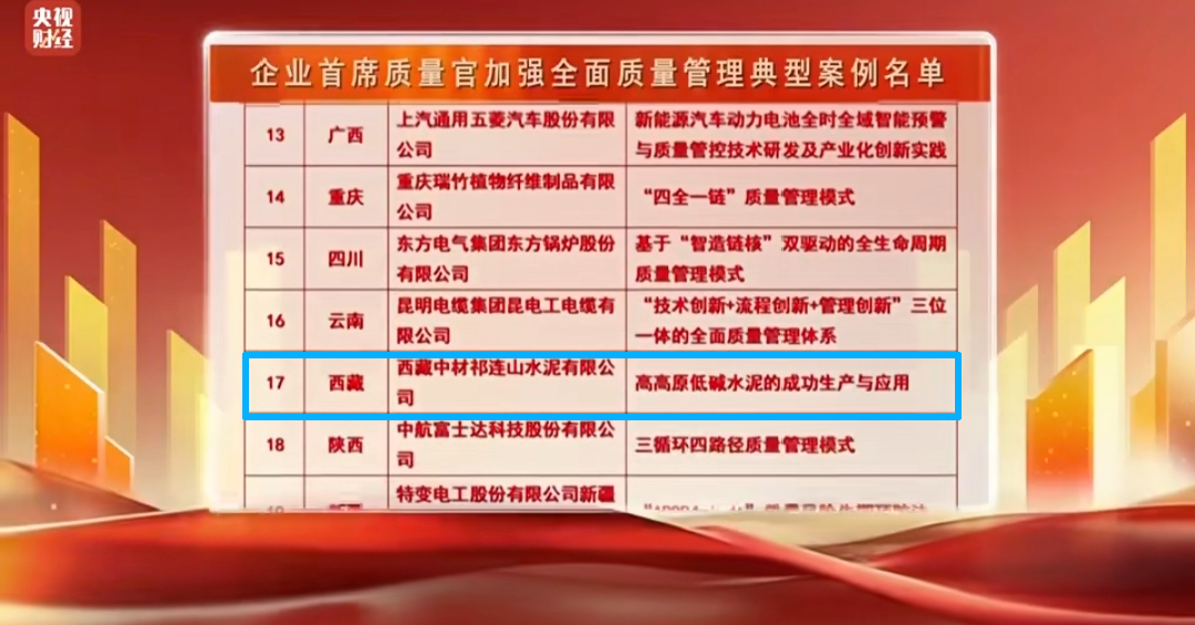 09、西藏中材祁連山入選央視“2025年企業(yè)首席質(zhì)量官加強(qiáng)全面質(zhì)量管理典型案例”
