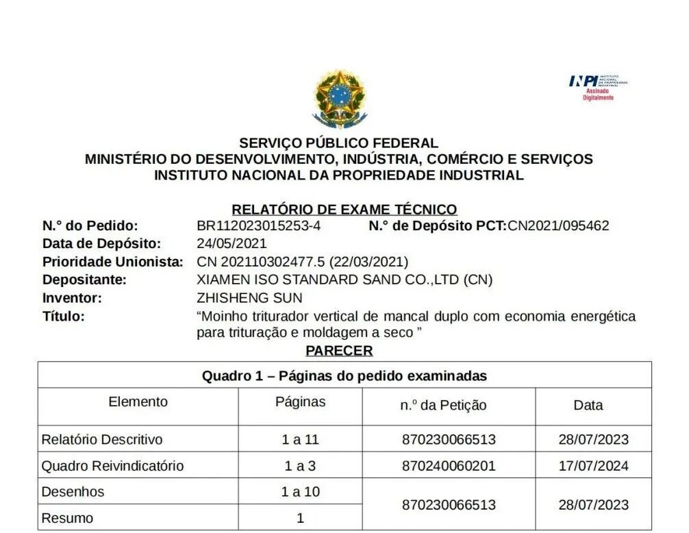 2、廈門標(biāo)準(zhǔn)砂獲巴西PCT國際專利授權(quán)