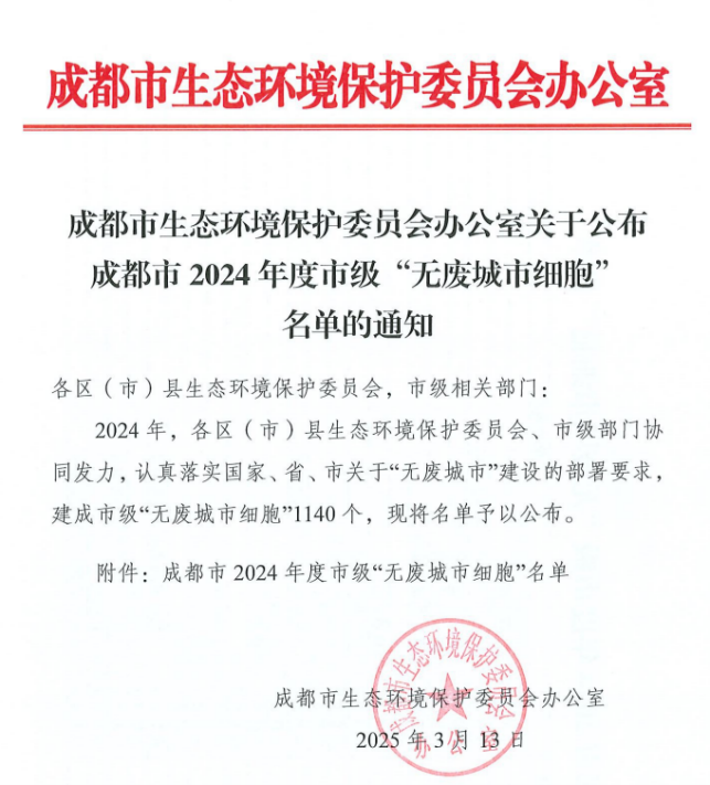 中國(guó)巨石成都公司積極響應(yīng)國(guó)家《“十四五”工業(yè)綠色發(fā)展規(guī)劃》以及省市各級(jí)單位關(guān)于 “無廢企業(yè)” 建設(shè)的號(hào)召,將綠色發(fā)展理念融入到企業(yè)運(yùn)營(yíng)的每一個(gè)環(huán)節(jié)。憑借在綠色發(fā)展方面的卓越成就,獲評(píng)成都市2024 年度市級(jí)“無廢城市細(xì)胞”中的“無廢工廠”殊榮。這不僅是對(duì)巨石成都過往努力的高度認(rèn)可,更是其邁向可持續(xù)發(fā)展道路上的又一重要里程碑。