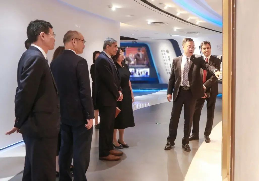 會談前,魏如山、薛忠民等陪同柯偉茂一行參觀了集團(tuán)業(yè)務(wù)展廳。