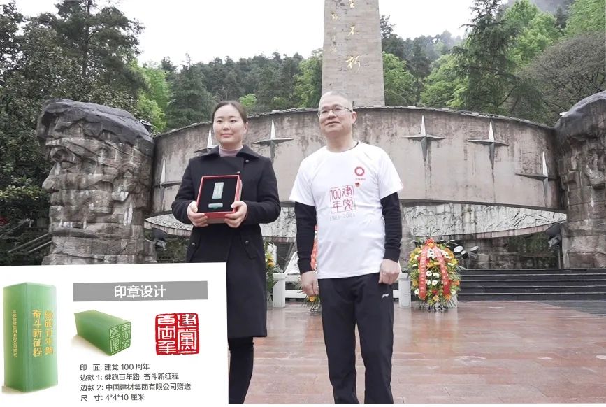 在遵義會議紀念館一號展廳舉行了中國建材集團慶祝建黨100周年新材料印章贈送儀式,貴州西南紀委書記李澤鑫同志向紅軍山烈士陵園贈送印章。