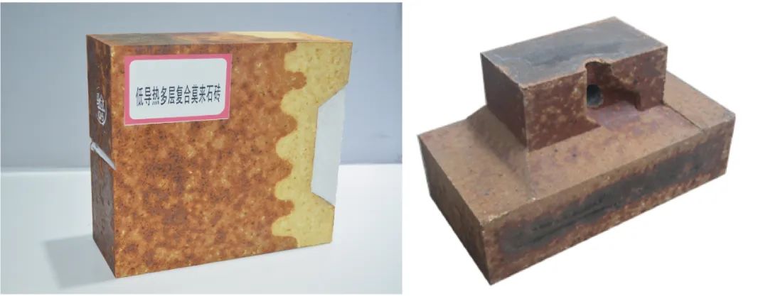 左:低導熱多層復合莫來石磚